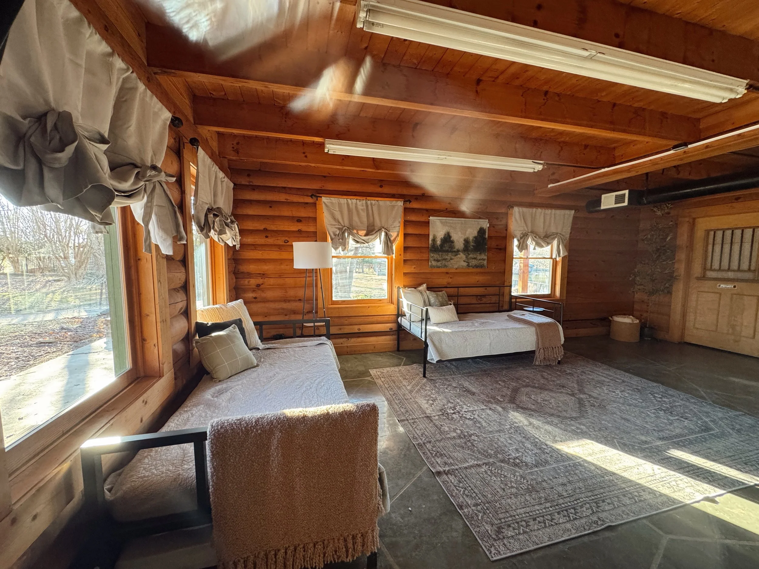 Perfect for families or groups, our spacious Log Cabin gives you plenty of room to gather while still soaking in the cozy Nature Nook atmosphere. Inside, you’ll enjoy all the essentials plus your own private bathroom and a large back patio just for your group. And of course, you’ll still have access to all the shared spaces: outdoor dining with grill & sink, hammocks, games, bathhouse, animal encounters, and more.