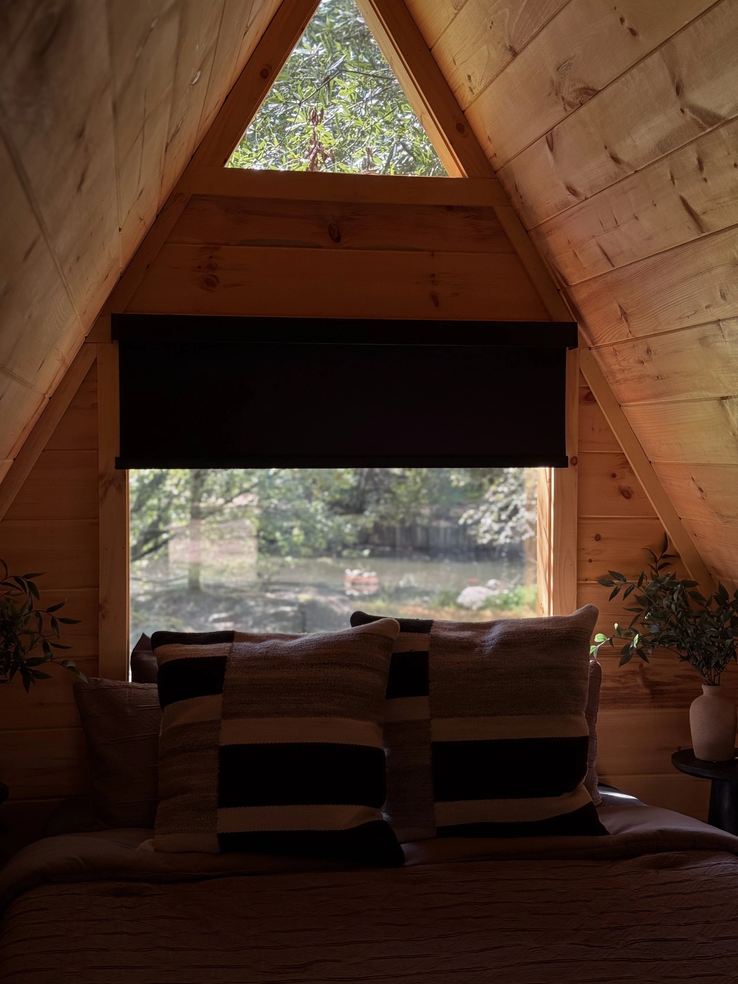 Our Comfort A-Frame Cabins still give you a bit of that cozy A-frame feel but with extra comfort and space to unwind. Inside, you’ll enjoy AC, an indoor dining area, and a coffee nook stocked with the essentials. Step outside to take advantage of our exclusive guest spaces: outdoor dining with grill & sink, hammocks, games, bathhouse, animal encounters, and more.